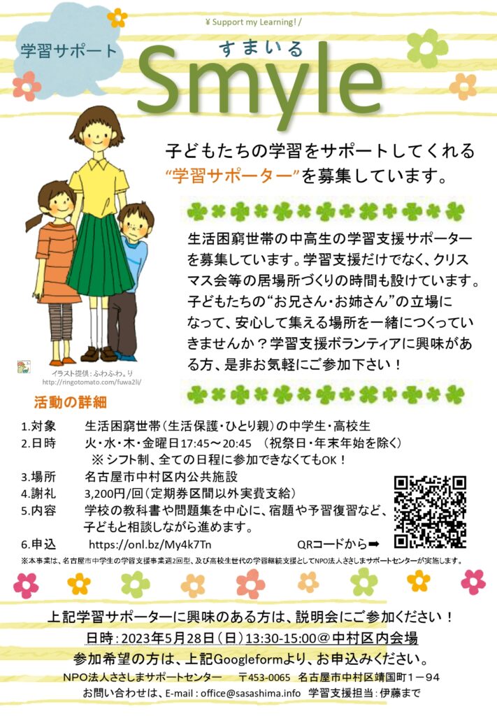 学習支援Smyle 2023年度春季新規サポーター説明会を開催します(5/28)