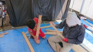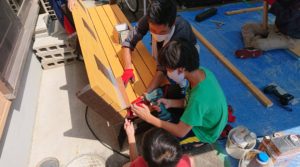 【子どもたちの居場所「まいまい」でベンチと看板を作りました】