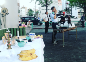 8月13日、若宮大通高架下の炊き出し会場で、この一年間に亡くなられた方をしのぶ追悼集会が開催されました。名古屋の野宿者支援団体が集まり、毎年お盆の時期に開催しているものです。