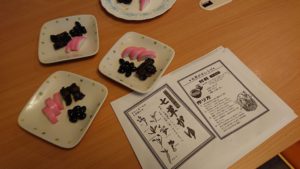七草がゆと一緒に、けんちん汁とかまぼこ・黒豆などのミニおせちも食べました。子ども