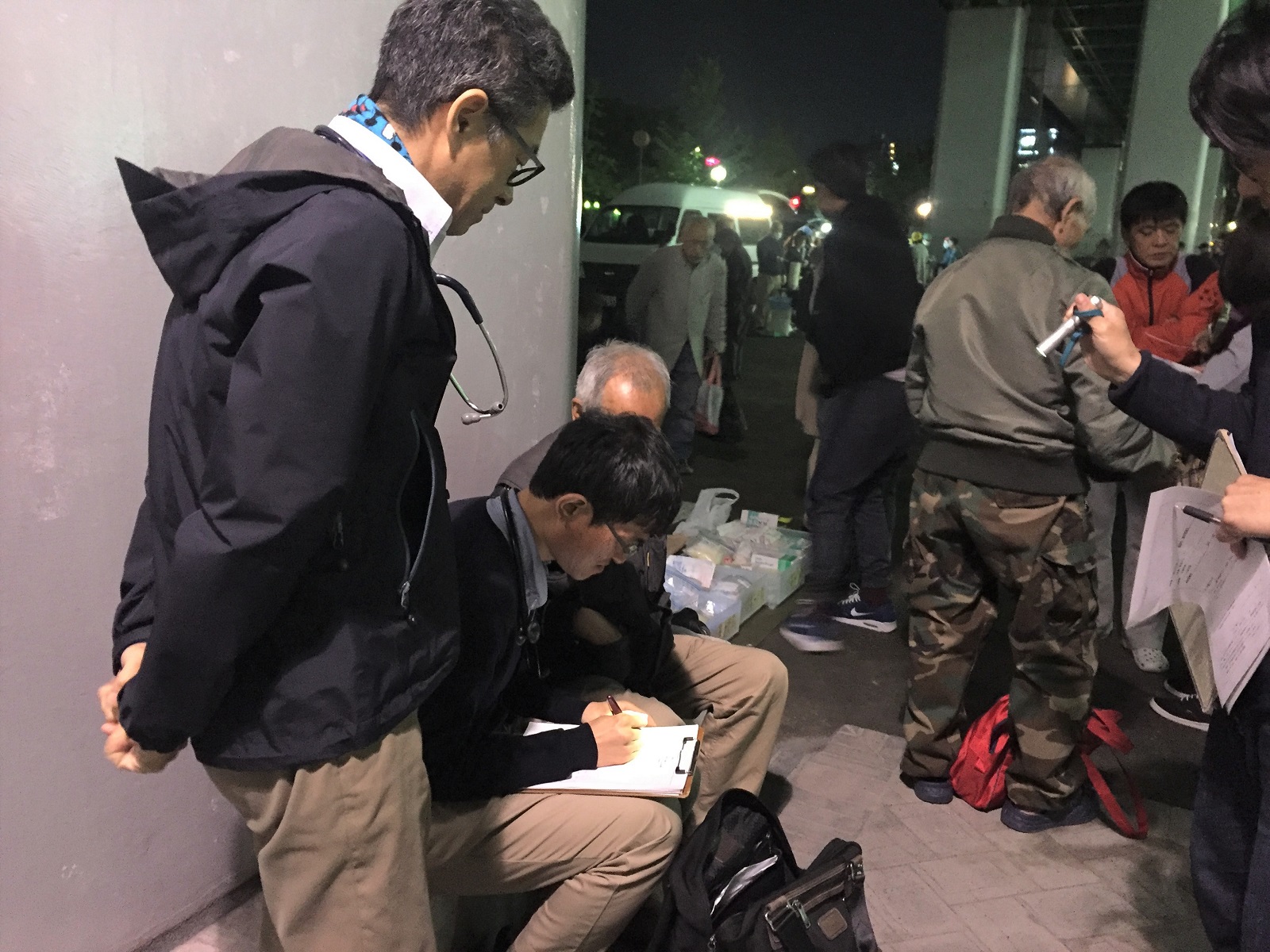 この日は名市大のお二人に加え、実習中の医学部の学生さんが医療相談を手伝ってくれたり、名古屋市内の別の場所で炊出しを行う団体「オアシス」のスタッフさんもお越しいただきました。